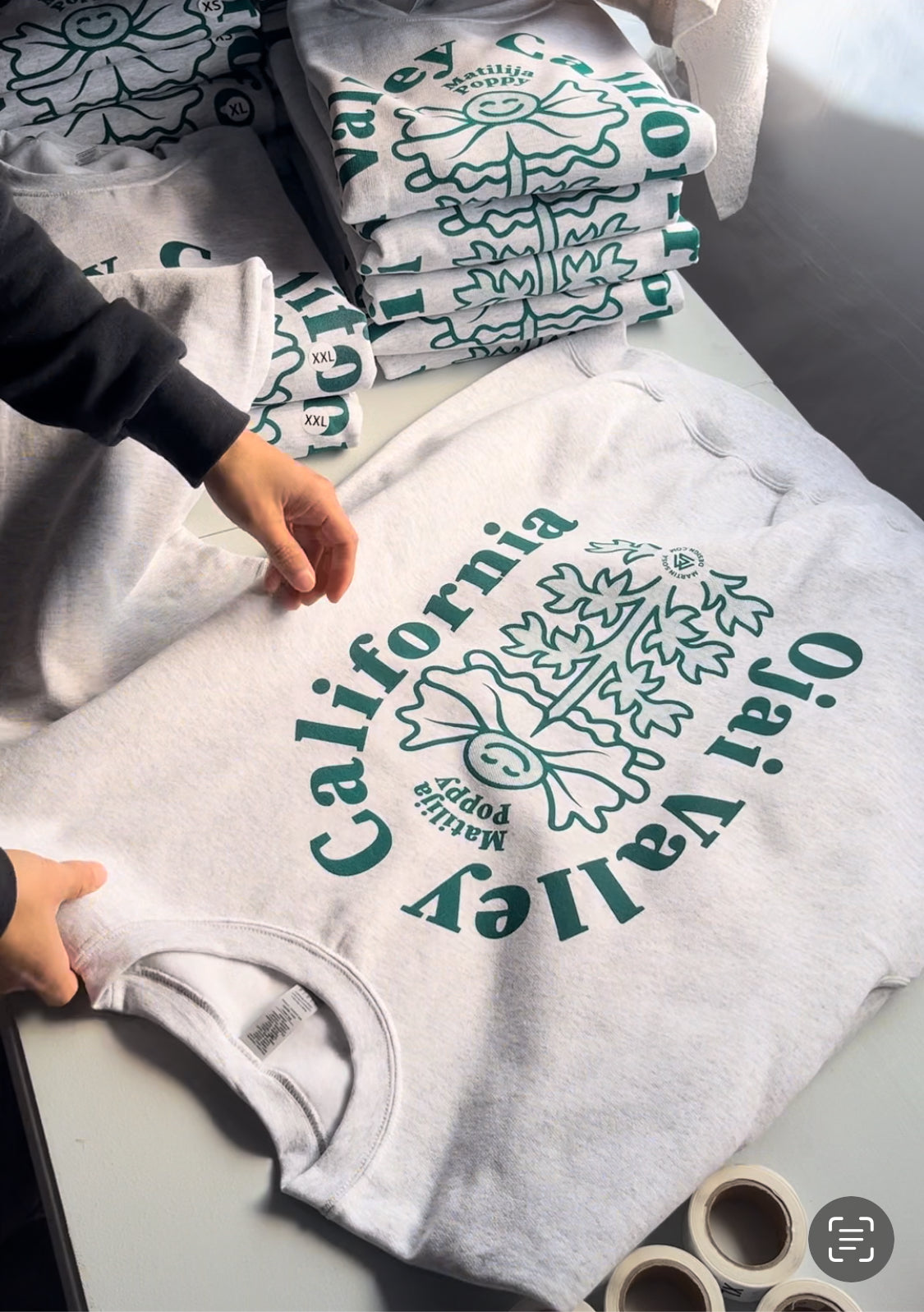 We screenprint our t-shirts in Ojai using water-based inks and a touch of magic.